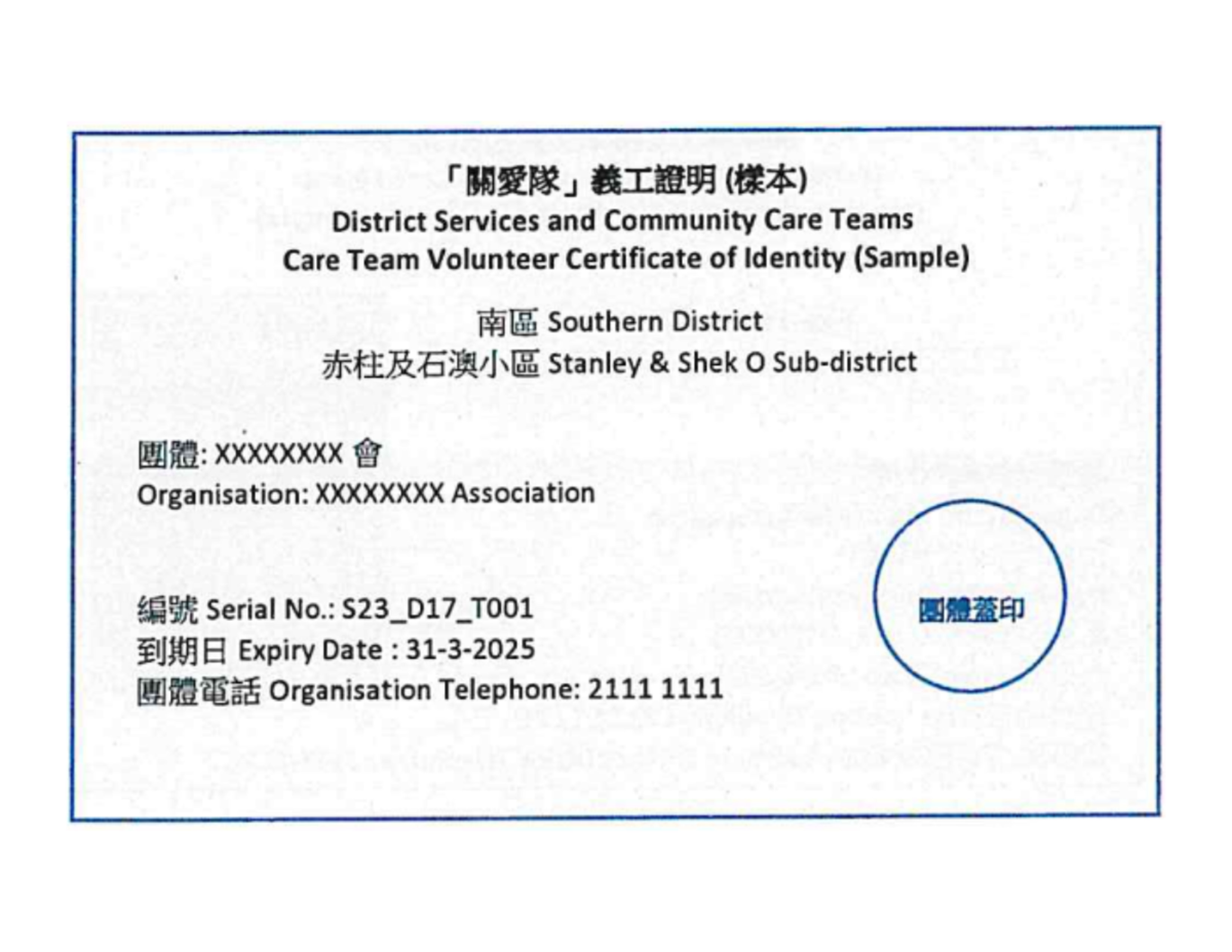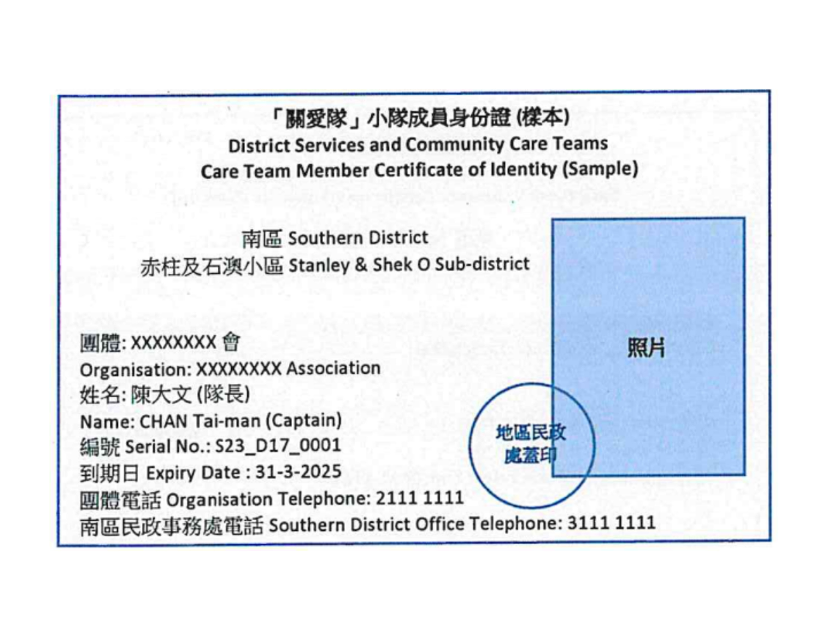 在进行家居探访时,「关爱队」小队成员会分别佩戴由各区民政事务处签发的「小队成员身份证」或由「关爱队」承办团体製作的「义工证明」。